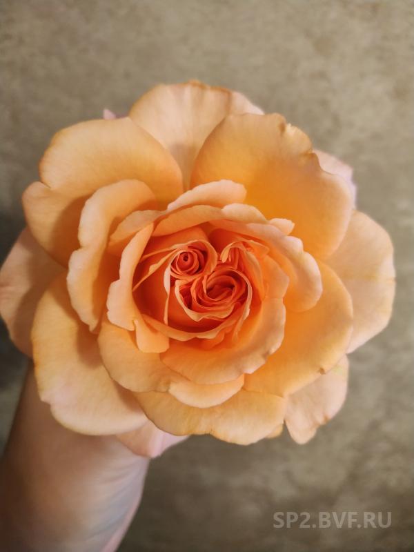 Нежная роза классической формы, которая при полном раскрытии больше похожа на старинную. Цвет градиентом от нежно-розового центра через белый к зеленым лепесткам на периферии.