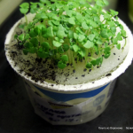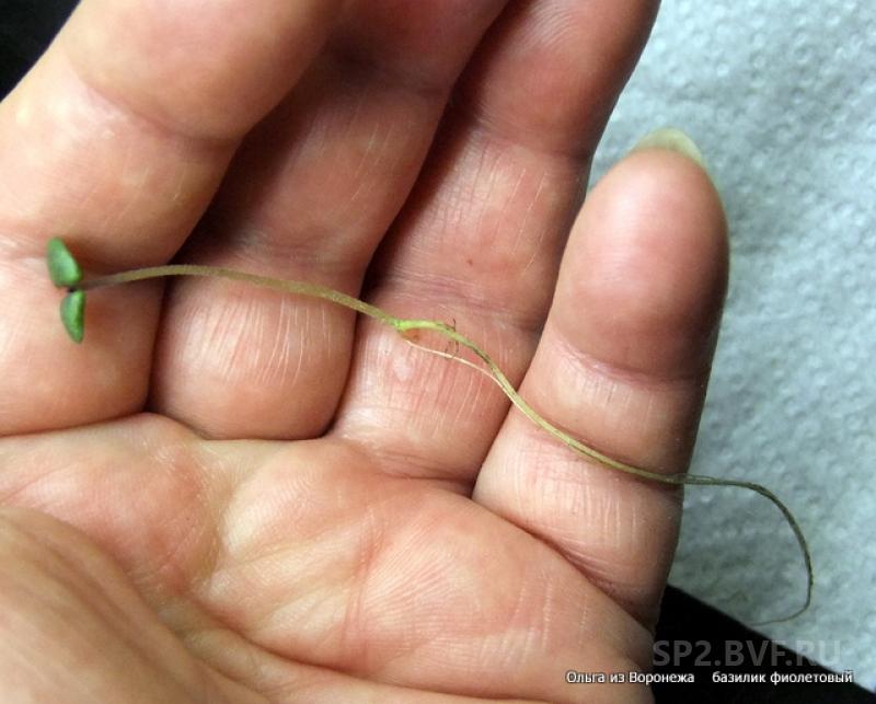 базилик фиолетовый (--.-.-.-.-.-.--.-..- до 12. 2020 года) один из ростков (его нечаянно зацепила и он вылез из коробочки сквозь подложку, да так легко)