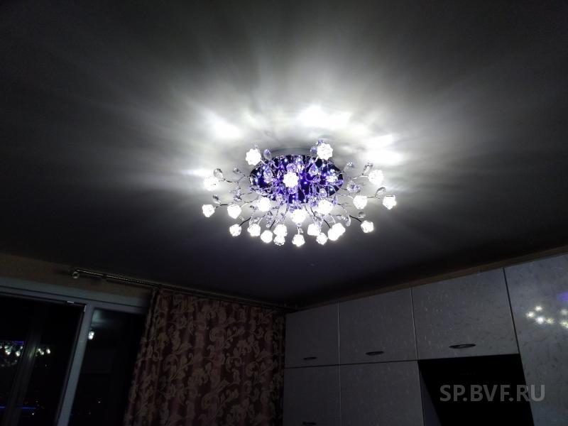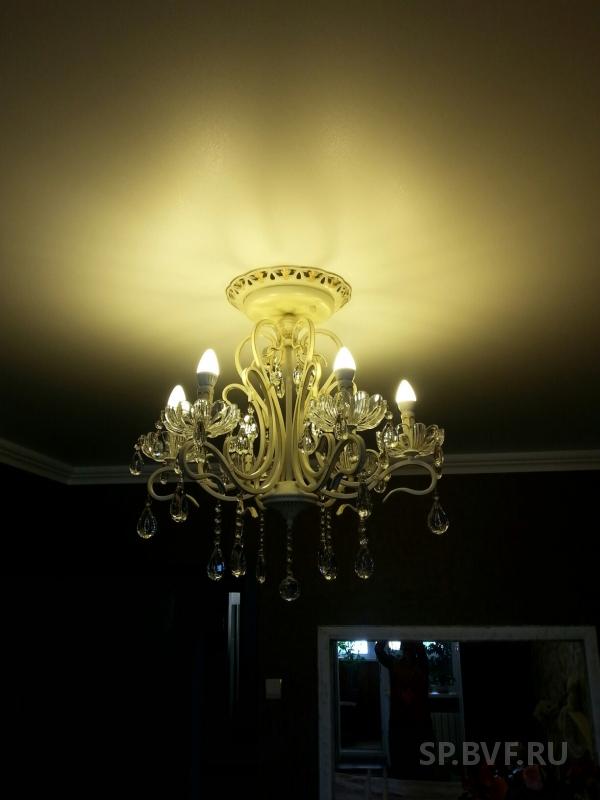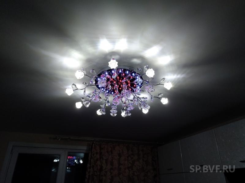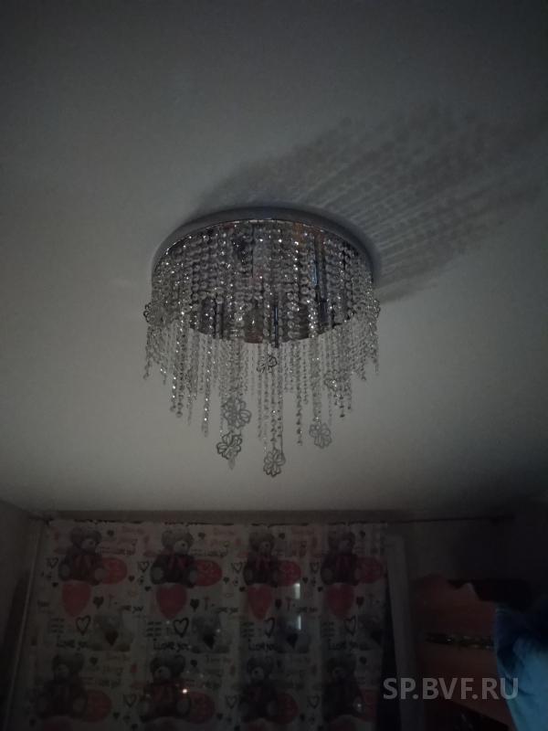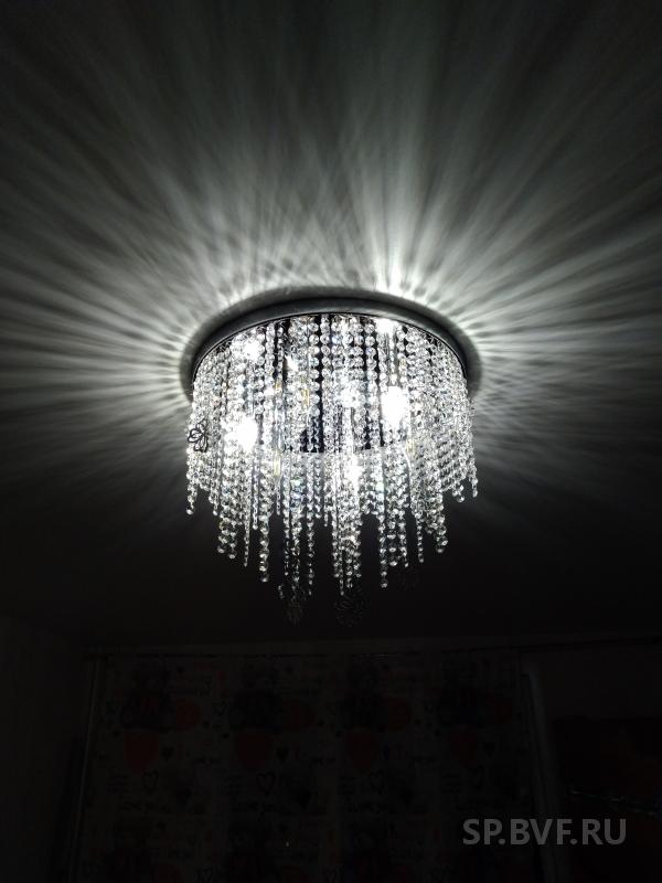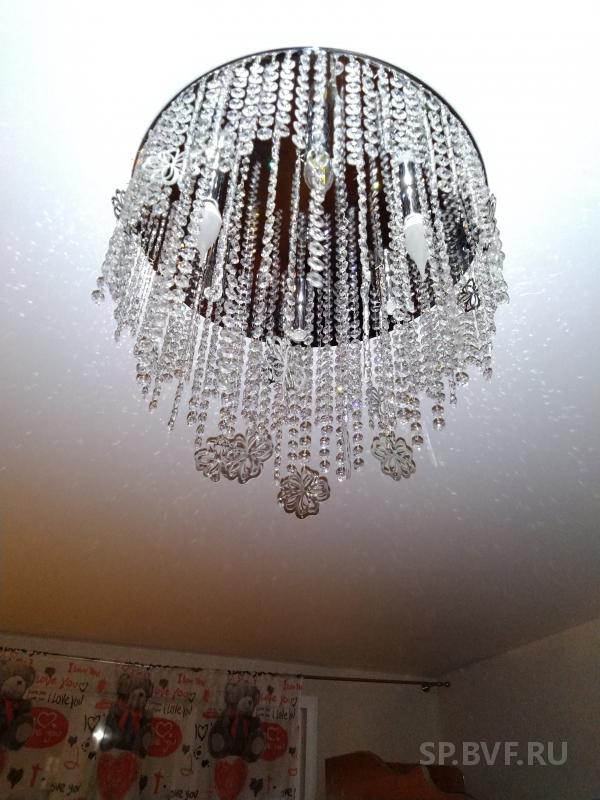 2. Хрустальная люстра с цветочками. Брала в детскую, по установке нареканий нет, все четко, тоже примерно 7500 обошлась. Для хрусталя и такой люстры отличная цена. Светит тоже ярко , комната 20 кв м, включаем только 3 лампы. В комплекте запасные хрусталики.