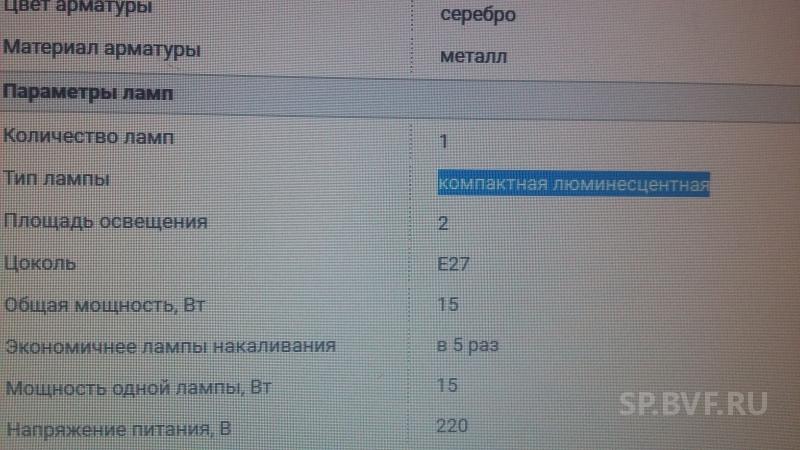 Номенклатура код 00000045684. Смотрится хорошо, но лампочки к ней подходят только ртутные энергосберегающие, а мы уже перешли на светодиодные. Со светодиод даже не включается. По ом заметила значок на самой лампе, что только спиральные лампы. Не знала, что так бывает. Пользуемся ей, конечно, но странно как-то. Другое фото не нашла в телефоне))