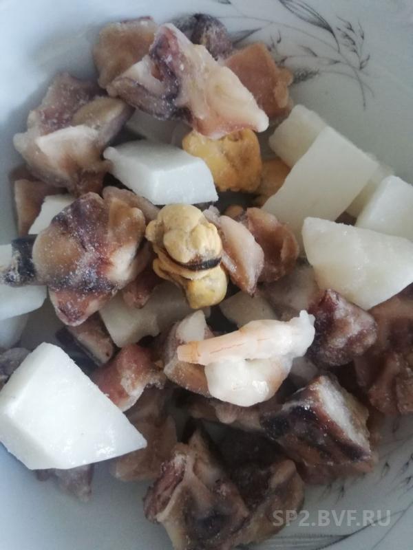 Коктейль представлен в основном осьминогами (надеюсь это они, поскольку еще не пробовала). На мой взгляд маловато мидий и креветок, но и льда тоже не много. В целом не плохо.