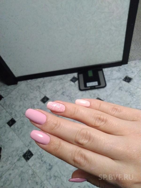На фото: мизинец 173 Кремовый, безымянный 173 Кремовый + рисунок кистью эльпаза 166 Вдохновение, средний 166 Вдохновение + вельветовый топ, указательный и большой 166 Вдохновение.