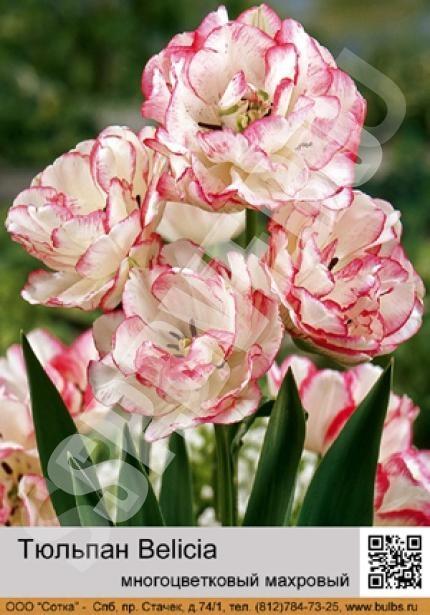 Тюльпан Belicia махровый белый с красным краем