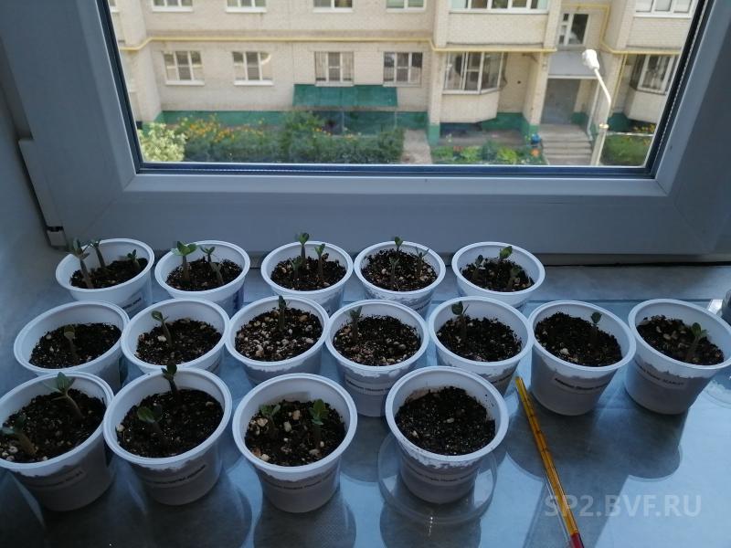 Всхожесть хорошая. 5 сортов по 3 семени все взошли. 11 сортов по 2 семени, из них три - оба взошли, 7 сортов - по одному всходу, и печаль... Самый долгожданный и полюбившийся сорт не взошел совсем. Красавец MARSHMALLOW очень огорчил.