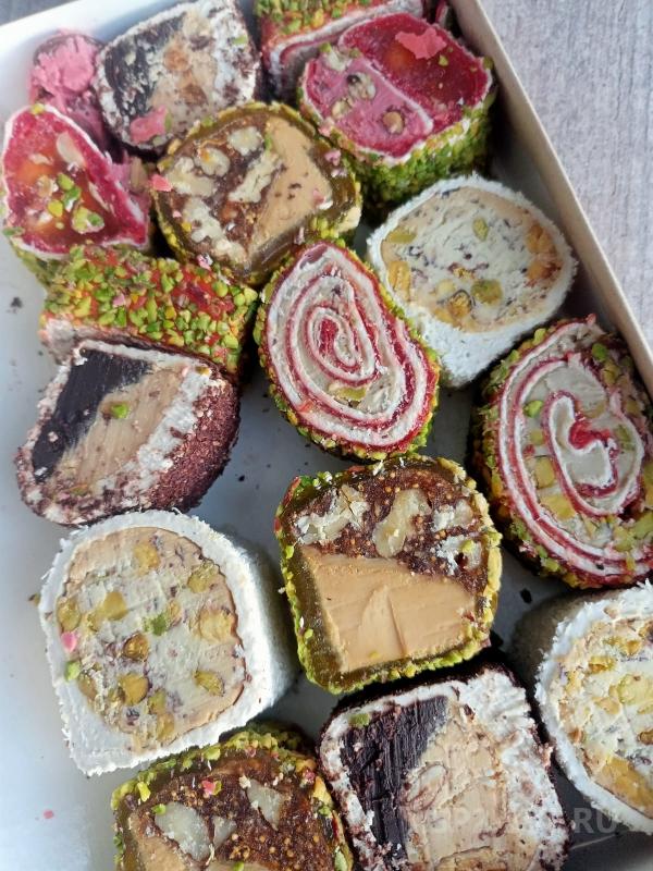 Лукум... я не фанат лукума, брала своей семье, фотки покажу. Но это что-то- и на вид, и на запах, про вкус вообще не говорю, там ассорти, думаю на любой вкус
