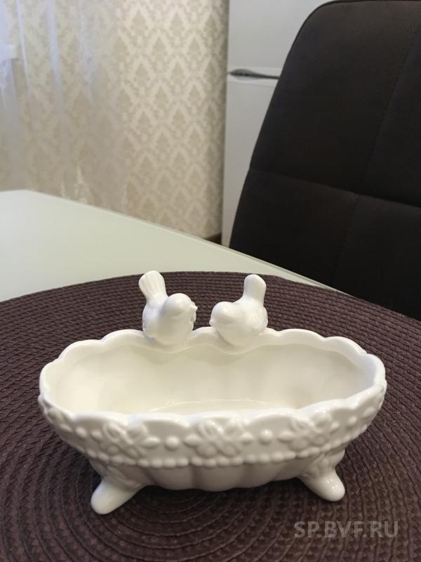 Девочки, я не являюсь фанатом красивой посуды, но тут и я не удержалась)) купила себе вот такую чудную подставочку для губки. Губка идёт в комплекте. Рисунок точь в точь как на фото. Смотрится обалденно (дочка поглядывает на неё, так и норовит забрать в качестве ванны для кукол))).