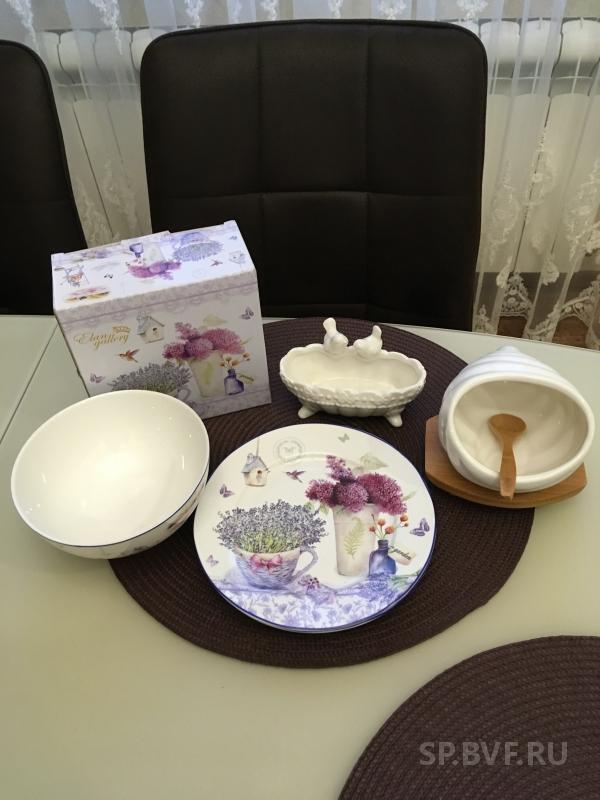 Получила столовый сервиз - 19 предметов, куплен по распродаже, обошелся в 1380. Боялась даже заглядывать, как там тарелочки доехали. Все прекрасно! Упаковано - выше всяких позвал. Ничего даже не шелохнется в коробке. Качество - Китай, но фабричный, очень достойное. Внешний вид лучше чем на картинке. Кроме того заказывала предметы из серии "Сыр" - тарелки для сыра и баночки. Очень интересно смотрятся на столе и качество хорошее. Участвую уже в третий раз - праздники на носу. Спасибо организатору, посуда качественная и красивая.