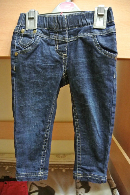 Джеггинсы рост 80/86. На наш рост 77 идут с запасом, как раз к лету будут хороши. Джинса классная,тянутся. Модель больше подойдет пухленьким. Только вот расстроило, что нет утяжки в поясе, а мы худенькие, придется самим резинку вшивать.
