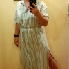 Вот еще платье-рубаха из ткани в полоску, помоему вискоза и лен. За счет сыободного фасона, разрезов и ткани в нем не жарко.