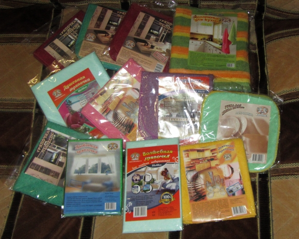 очень понравились тряпочка-пылесос, домашняя, любимая, скрабер.. мне очень понравились кухонные полотенца, яркие, веселые и хорошо впитывают!! Огромное спасибо!