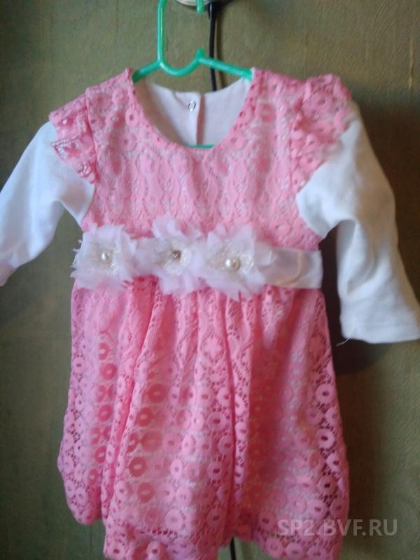 Заказала платье размер 92 нам 7,5 месяцев в привык. Платье 100% хлопок, понравилось.