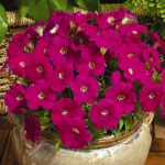 Производитель: Sakata, Супер-компактные растения высотой около 20 см, сильно ветвятся и обильно цветут. Эффектные воронковидные цветы диаметром 6 см. Цветение с июня до сильных осенних заморозков. Прекрасно подходит для клумб, рабаток, великолепно смотрится в моноцветниках. |