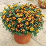 Производитель: Thompson&Morgan, Бархатцы раскидистые, карликовые высотой 25 см. Кусты компактные, во время цветения полностью усыпаны яркими цветками. Цветки полосатые, очень интересные и ароматные. Они оранжево-коричневые с яркой желто-оранжевой серединкой. Сорт является обладателем премии «Fleuroselect, премии Новизна». Зацветает рано, в конце мая – начале июля и цветет обильно до заморозков. |