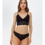 Бюстгальтер триангл из кружева. Спина декорирована кружевным треугольником. 80% полиамид, 20% эластан |
