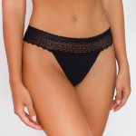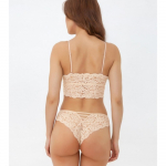 Танга из кружева, спереди и сзади соединены эластичной тесьмой по бокам. 80% полиамид, 20% эластан |