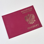 YW-26 ОБЛОЖКА НА ПАСПОРТ Сливовый | Обложка на паспорт изготовлена из натуральной кожи.На обложке тиснение золотой фольгой с гербом России и слов Российской федерации,внутри прозрачные слайдеры для хранения пластиковых карточек.