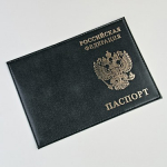 YW-26 ОБЛОЖКА НА ПАСПОРТ Черный | Обложка на паспорт изготовлена из натуральной кожи.На обложке тиснение золотой фольгой с гербом России и слов Российской федерации,внутри прозрачные слайдеры для хранения пластиковых карточек.