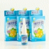 Сладкий и фруктовый вкус! Состав: сорбит, гидратированный диоксид кремния, деионизированная вода, пропиленгликоль, лаурилсульфат натрия, съедобный ароматизатор, экстракт персика, карбоксиметилцеллюлоза натрия, ксилит, экстракт полыни, пробиотики, бензоат натрия. Способ применения: на зубную щетку нанести пасту (горошенку), чистить вверх и вниз в течении 2 минуть, затем прополаскать полость рта водой. Объём: 65 гр. |