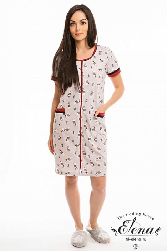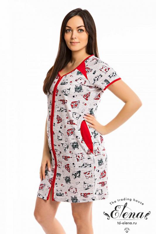 Туника выполнена из х/б полотна с набивным рисунком. Застёжка на пуговицы до пояса. Воротник отложной, рукава короткие, низ туники со скруглением к боковым швам. Спереди расположены карманы.. Размерный ряд: 42-62.. Состав. Хлопок 100%. Артикул. 321119б. Базовая единица. шт |