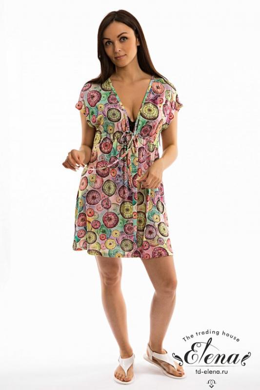 Пляжная туника выполнена из вискозного полотна. Силуэт туники - свободный, фиксируется по фигуре с помощью шнура в кулиске.. Размерный ряд: 42-56.. Состав. Вискоза 95% Лайкра 5%. Артикул. 322186а. Базовая единица. шт |