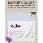 17 Артикул 279809945: Матирующие салфетки для лица Lorilac Лаванда 100 шт Матирующие салфетки для лица быстро нейтрализуют жирный блеск в течение дня не нарушая макияж. На каждую салфетку нанесен специальный тальк, который моментально впитывает излишки жира и освежает макияж. 100 супертонких салфеток в элегантной упаковке. Способ применения: приложить салфетку на участок жирной кожи на лице и аккуратно промокнуть, салфетки одноразовые, повторное применение не допускается.