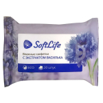 26 Артикул 778061124: Влажные салфетки SoftLife с экстрактом василька 20 шт. Салфетки влажные освежающие для лица и рук с нежным ароматом Василька. . Комплектация. В упаковке 20 шт.. 29 руб.