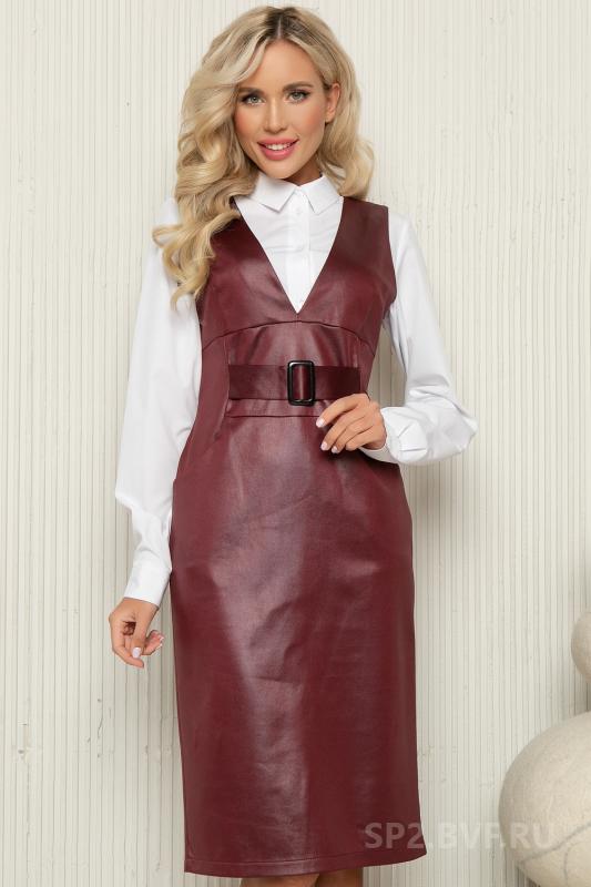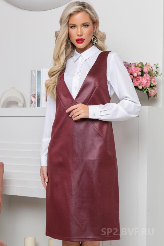 Артикул 1408044149: Сарафан "Анабель" (джерси марсала) https://elza-nsk.ru/collection/raspradazha-zhenskoy-odezhdi/product/sarafan-anab | Офисный сарафан, который удачно заменит Ваш брючный костюм для деловых встреч.Сарафан выполнен из трикотажа "джерси" под кожу, приталенный с V-образным вырезом. Он скроет все недостатки и подчеркнет достоинства Вашей фигуры.Презентабельный вид обеспечен.. (Длина: 44-46 = 102 см; 48-50 = 103 см:)