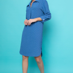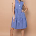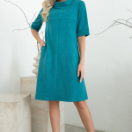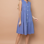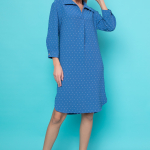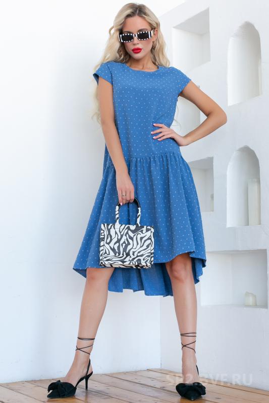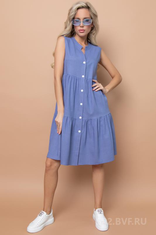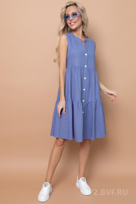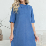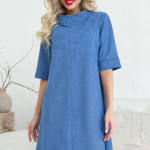 Артикул 1402997774: Платье "Жаркое лето" (джинс) https://elza-nsk.ru/collection/novinki/product/platie-zharkoe-leto-dzhins | Лёгкое платье свободного кроя. Ворот - стойка, переходящий в планку на пуговицах. Воланы на сборке придают изюминку этому платью.Длина по спинке 42р=98см. 44р=99см. 46р=100см. 48р=101см. 50р=102см.