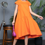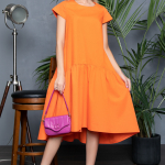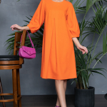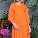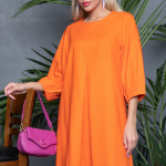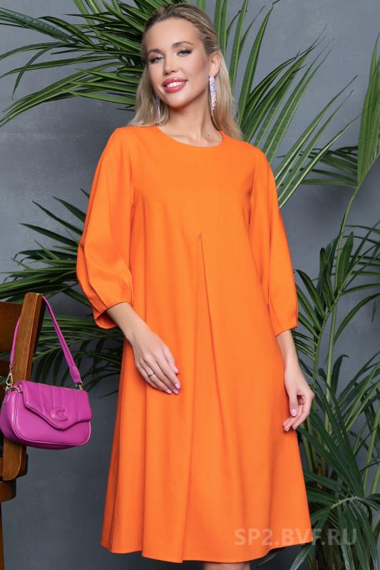 Артикул 136913447: Платье "Лилия" (оранж) https://elza-nsk.ru/collection/novinki/product/platie-liliya-oranzh | Оригинальный фасон платья "Лилия" из новой коллекции бренда ELZA-2023 подчеркнет Вашу индивидуальность. Платье свободного кроя, рукав пышный 3/4. Длины: (46-48р-98см,50-52р-100см).