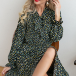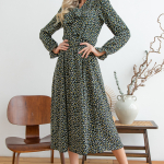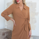 Артикул 01053409658: Платье "Ретро" (горох миндаль) https://elza-nsk.ru/collection/novinki/product/platie-retro-goroh-mindal | Для роскошной женщины - для Вас! Изумительное платье "в горох", выполнено в контрастной гамме. Платье приталенного силуэта "на запах". Отложной воротник и манжеты выполнены из отделочной ткани. По передней полочке декоративное кольцо, через которое завязывается бант.