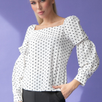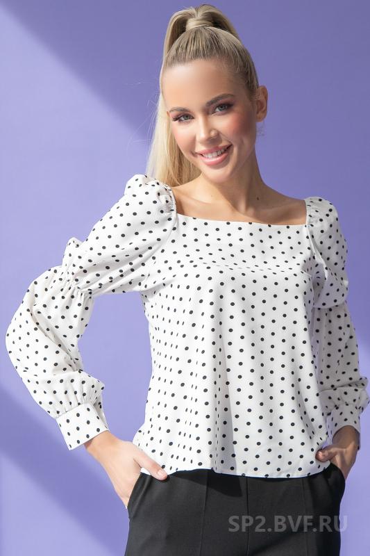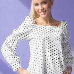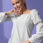 Артикул 88202534: Блузон "Карэ" (горох крупный) https://elza-nsk.ru/collection/raspradazha-zhenskoy-odezhdi/product/bluzon-kare- | Блузон с привлекательным вырезом "карэ" (тренд сезона) подчеркивает женственную привлекательность. Пышный рукав со сборкой не останется незамеченным и в тоже время сделает образ очень элегантным и легким. Подойдет, как для празднечных мероприятий, так же и для ежедневной работы в офисе. Идеально сочетается с брюками и юбками из коллекции нашего бренда. (Длина по спинке- 48см; рукав -56см)