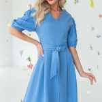 Артикул 530036629: Платье "Лилия" (небо) https://elza-nsk.ru/collection/novinki/product/platie-liliya-nebo | Оригинальный фасон платья "Лилия" из новой коллекции бренда ELZA-2023 подчеркнет Вашу индивидуальность. Платье свободного кроя, рукав пышный 3/4. Длины: (46-48р-98см,50-52р-100см).
