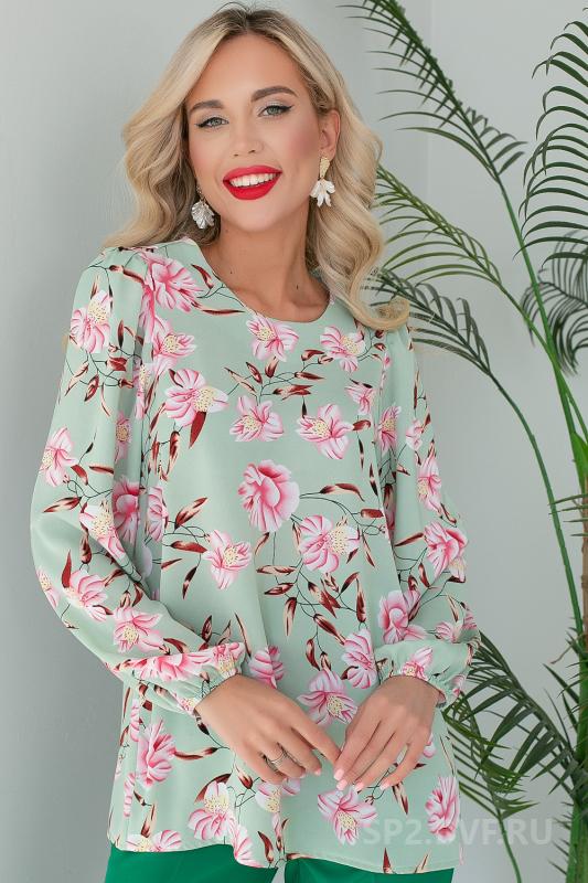 Артикул 0462130797: Блузон "Парижанка" (цветы мята) https://elza-nsk.ru/collection/novinki/product/bluzon-parizhanka-tsvety-myata | Утонченная, очаровательная блузка свободного кроя с цветочным принтом (Длины: 44-69см; 46-70см; 48-71см; 50-72см; 52-73см)