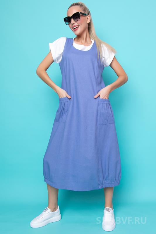 Артикул 321673035: Сарафан "Анабель" (джерси электрик) https://elza-nsk.ru/collection/raspradazha-zhenskoy-odezhdi/product/sarafan-anab | Офисный сарафан, который удачно заменит Ваш брючный костюм для деловых встреч.Сарафан выполнен из трикотажа "джерси" под кожу, приталенный с V-образным вырезом. Он скроет все недостатки и подчеркнет достоинства Вашей фигуры.Презентабельный вид обеспечен.. (Длина: 44-46 = 102 см; 48-50 = 103 см:)