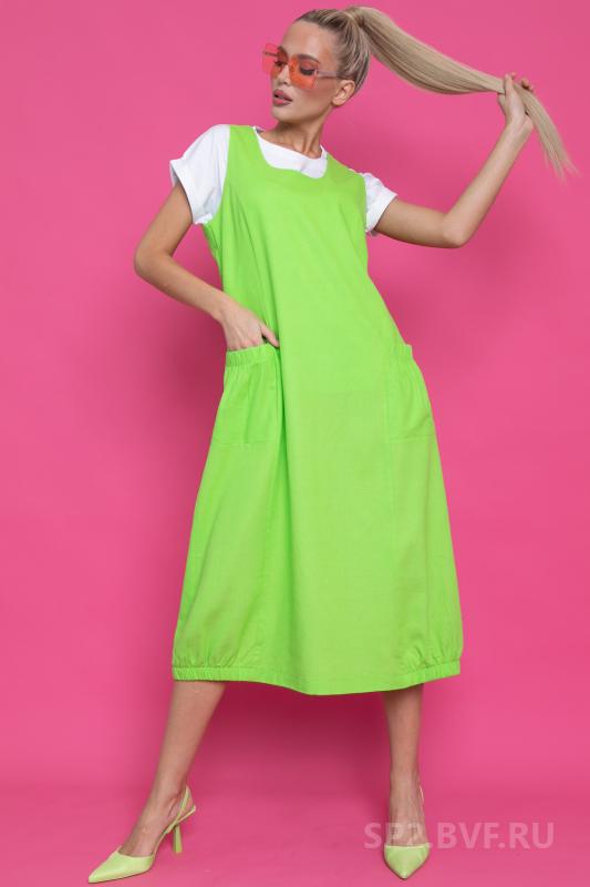 Артикул 1920833299: Сарафан "Анна" (джерси нефрит) https://elza-nsk.ru/collection/raspradazha-zhenskoy-odezhdi/product/sarafan-anna | Эффектный офисный сарафан из трикотажа "джерси" по кожу. Оригинальный фасон подчеркнет Вашу индивидуальность. (Длины: 44-46=104см; 48-52=105см)