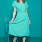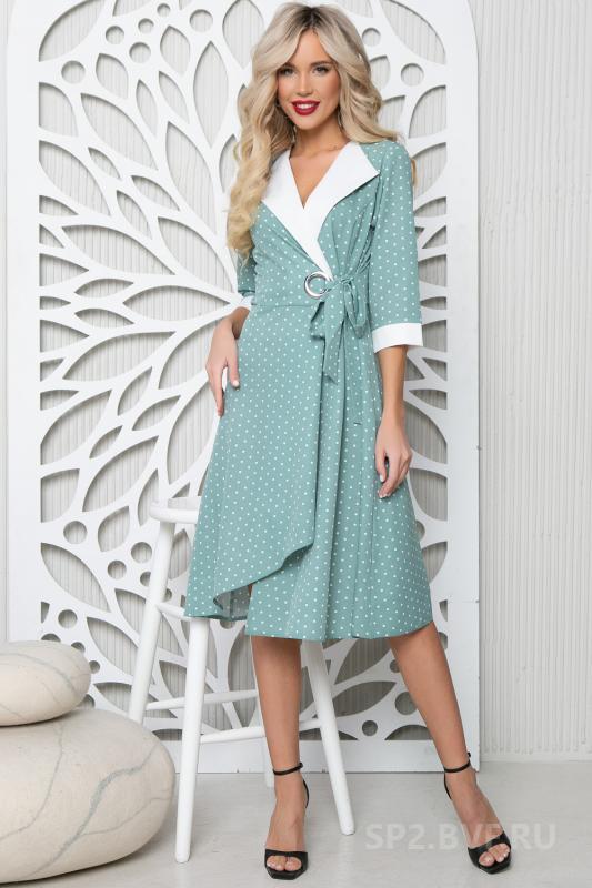 Артикул 2076675045: Платье "Ретро" (горох мята) https://elza-nsk.ru/collection/novinki/product/platie-retro-goroh-myata | Для роскошной женщины - для Вас! Изумительное платье "в горох", выполнено в контрастной гамме. Платье приталенного силуэта "на запах". Отложной воротник и манжеты выполнены из отделочной ткани. По передней полочке декоративное кольцо, через которое завязывается бант.
