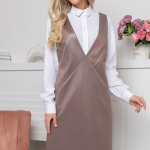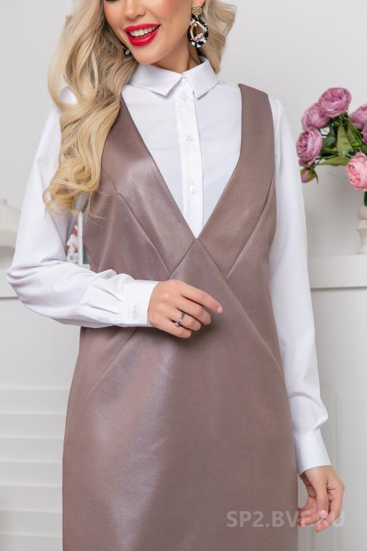 Артикул 1361199885: Сарафан "Анабель" (джерси мокко) https://elza-nsk.ru/collection/raspradazha-zhenskoy-odezhdi/product/sarafan-anab | Офисный сарафан, который удачно заменит Ваш брючный костюм для деловых встреч.Сарафан выполнен из трикотажа "джерси" под кожу, приталенный с V-образным вырезом. Он скроет все недостатки и подчеркнет достоинства Вашей фигуры.Презентабельный вид обеспечен.. (Длина: 44-46 = 102 см; 48-50 = 103 см:)
