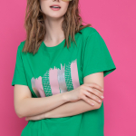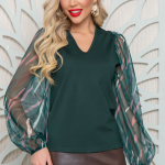 Артикул 1247495923: Блузон "Джаконда" (изумруд) https://elza-nsk.ru/collection/raspradazha-zhenskoy-odezhdi/product/bluzon-dzhak | Оригинальный блузон с шикарными рукавами из сетки-стрейч с принтом. Будь яркой на любом мероприятии.