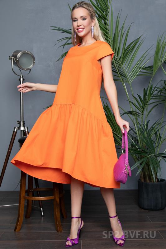 Артикул 0542349515: Платье "Тайны радуги" (оранж) https://elza-nsk.ru/collection/novinki/product/platie-tayny-radugi-oranzh | Женственное и романтичное платье с воланом. Объемный волан создает свободный летящий силуэт.Платье жарким летом поможет выгодно скорректировать фигуру. Длина : ( 42-48р-113 см).