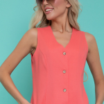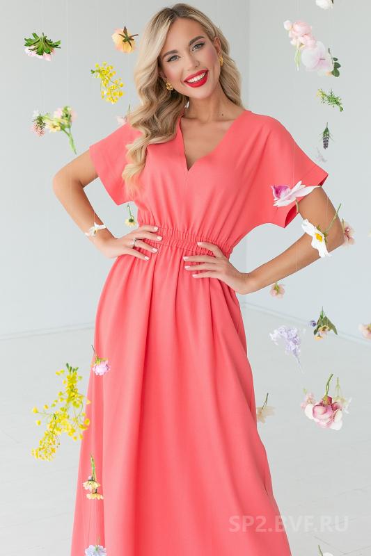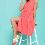 Артикул 0277669965: Платье "Жаркое лето" (коралл) https://elza-nsk.ru/collection/novinki/product/platie-zharkoe-leto-koral | Лёгкое платье свободного кроя. Ворот - стойка, переходящий в планку на пуговицах. Воланы на сборке придают изюминку этому платью.Длина по спинке 42р=98см. 44р=99см. 46р=100см. 48р=101см. 50р=102см.