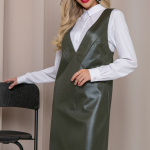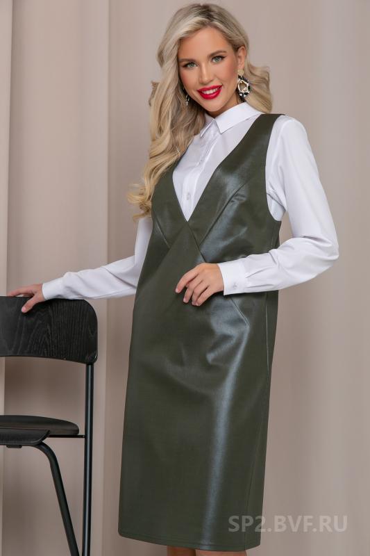 Артикул 58482555: Сарафан "Анабель" (джерси хаки) https://elza-nsk.ru/collection/raspradazha-zhenskoy-odezhdi/product/sarafan-anab | Офисный сарафан, который удачно заменит Ваш брючный костюм для деловых встреч.Сарафан выполнен из трикотажа "джерси" под кожу, приталенный с V-образным вырезом. Он скроет все недостатки и подчеркнет достоинства Вашей фигуры.Презентабельный вид обеспечен.. (Длина: 44-46 = 102 см; 48-50 = 103 см:)