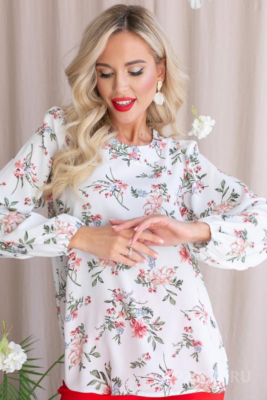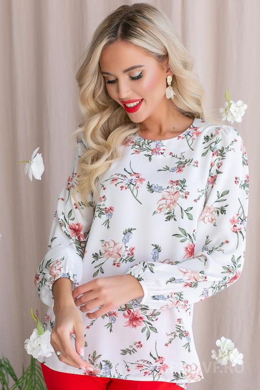 Артикул 268582293: Блузон "Парижанка" (цветы белая) https://elza-nsk.ru/collection/novinki/product/bluzon-parizhanka-tsvety-belaya | Утонченная, очаровательная блузка свободного кроя с цветочным принтом. (Длины: 44-69см; 46-70см; 48-71см; 50-72см; 52-73см)