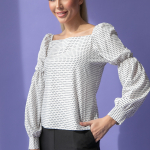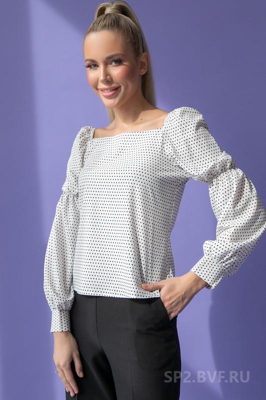 Артикул 708731649: Блузон "Карэ" (горох мелкий) https://elza-nsk.ru/collection/raspradazha-zhenskoy-odezhdi/product/bluzon-kare- | Блузон с привлекательным вырезом "карэ" (тренд сезона) подчеркивает женственную привлекательность. Пышный рукав со сборкой не останется незамеченным и в тоже время сделает образ очень элегантным и легким. Подойдет, как для празднечных мероприятий, так же и для ежедневной работы в офисе. Идеально сочетается с брюками и юбками из коллекции нашего бренда. (Длина по спинке- 48см; рукав -56см)